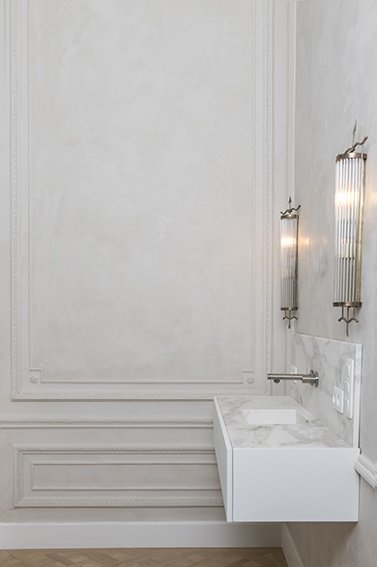 In Kombination mit LimePaint, das eine pudrige, atmungsaktive Oberfläche bietet, wirken die beiden Materialien in perfekter Harmonie — sie vereinen Stärke, Textur und Reinheit. Gemeinsam schaffen sie eine Atmosphäre von Eleganz, Leichtigkeit und Authentizität in modernen Innenräumen.